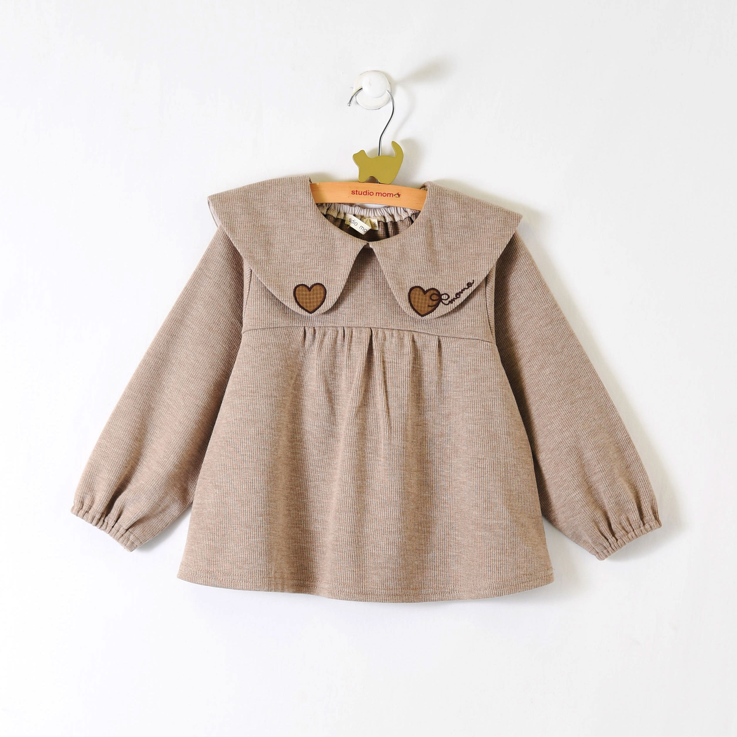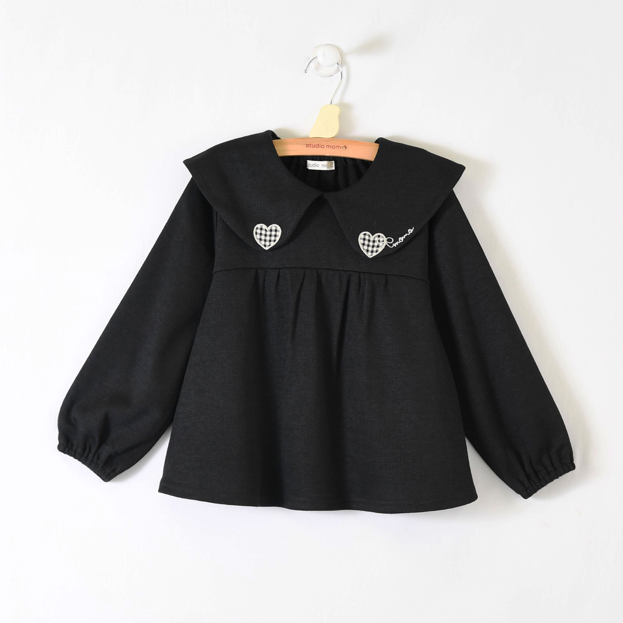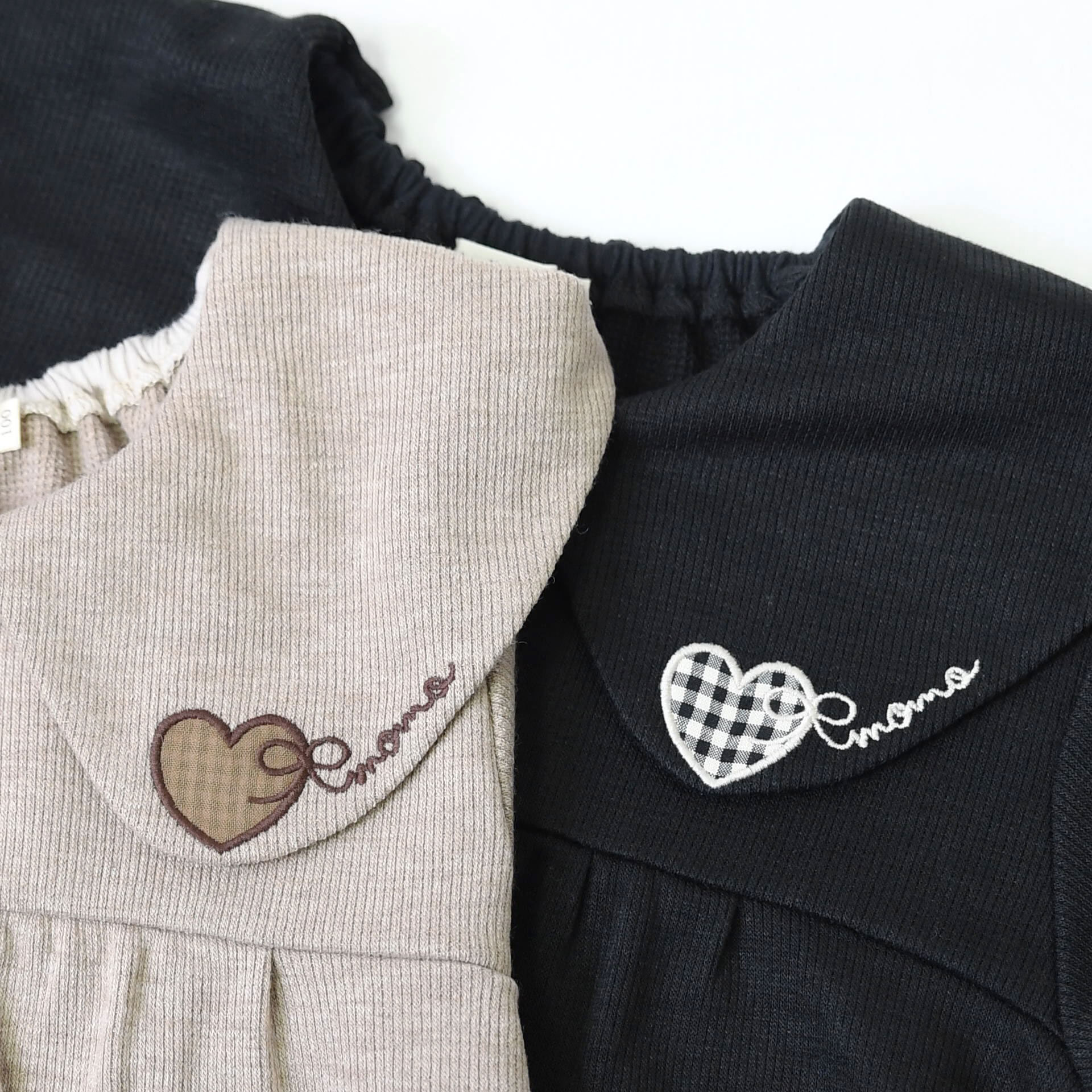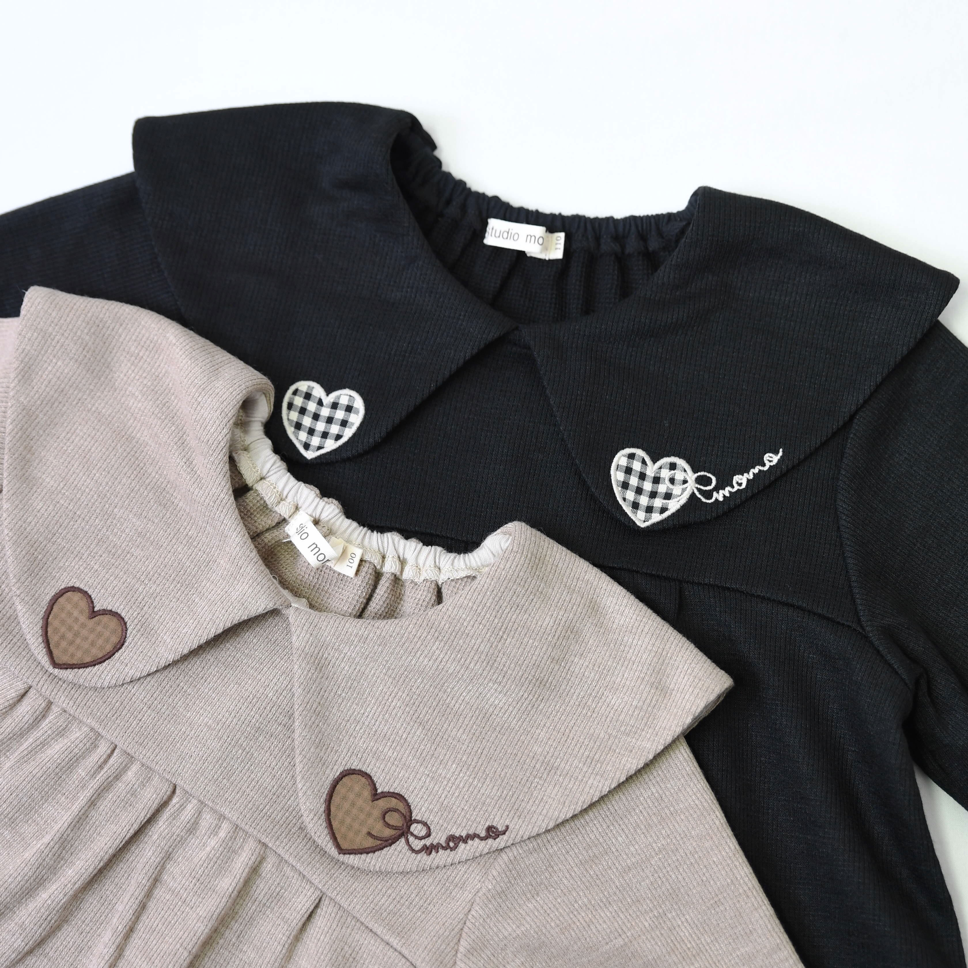 【プルオ―バー】大きな衿のハートアップリケがポイントのチュニックです