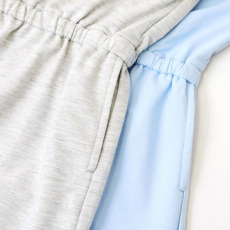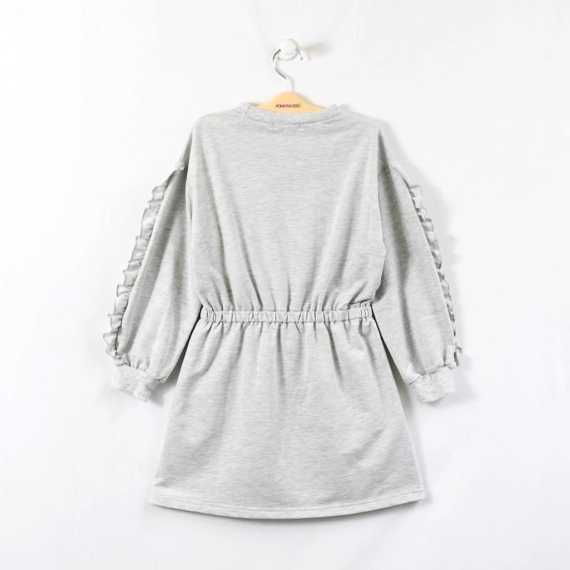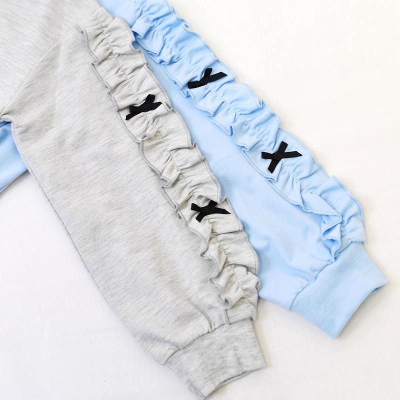 【ワンピ】袖フリル使いリボンプリント入り、ウエスト切替のトレーナーワンピ