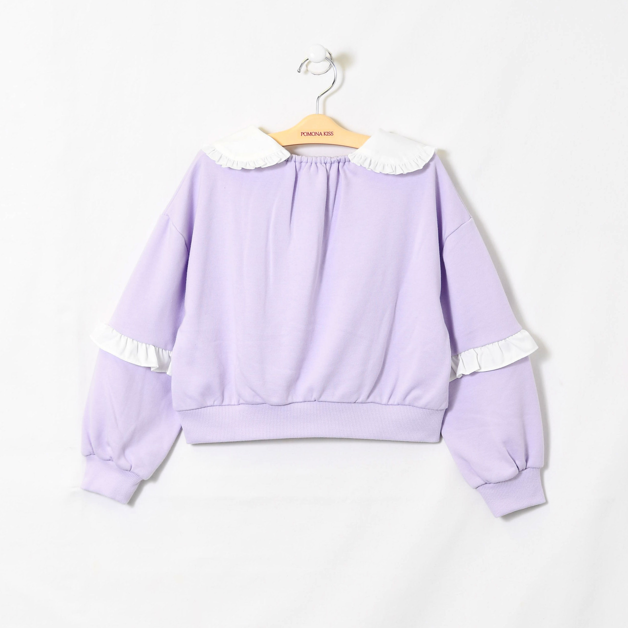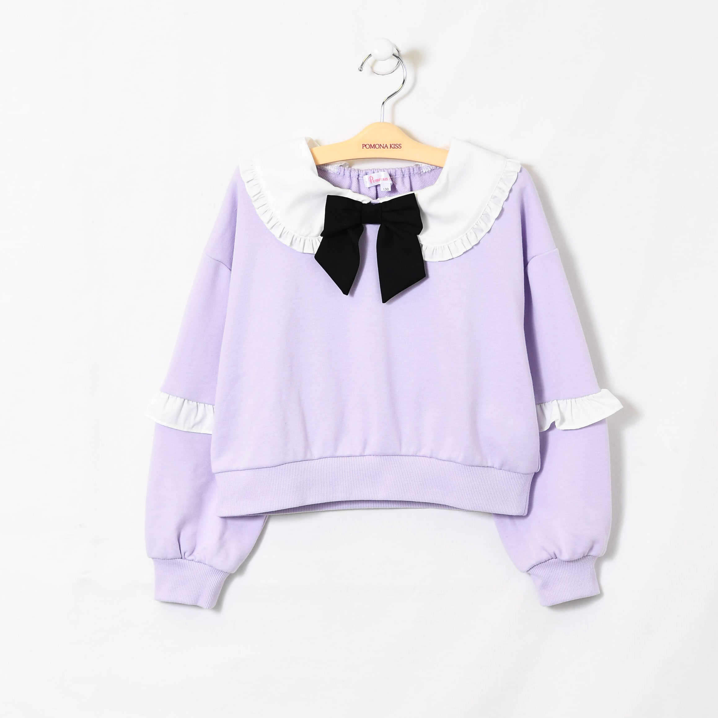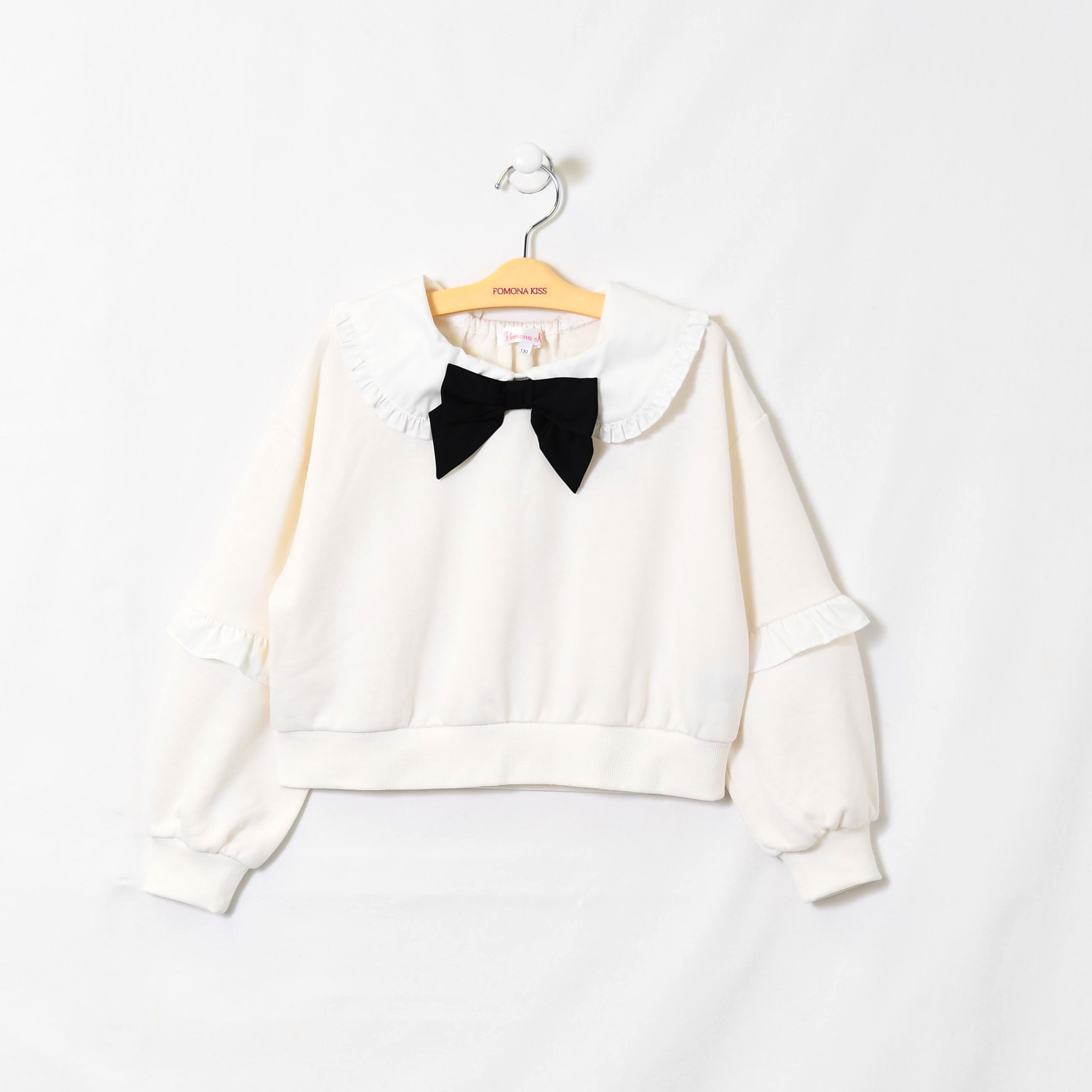 【プルオーバー】取り外しリボン付き、フリル使いガーリーなトレーナー