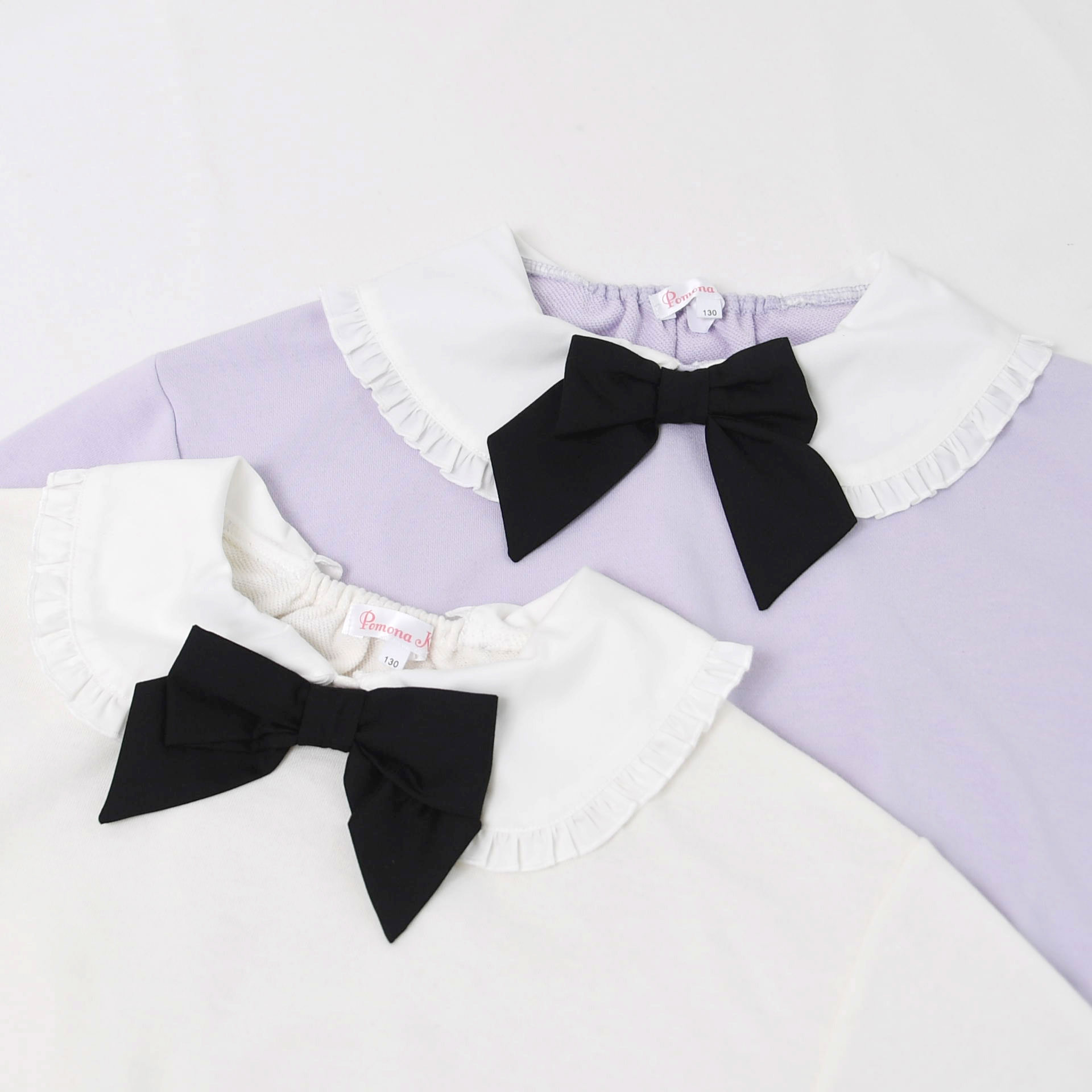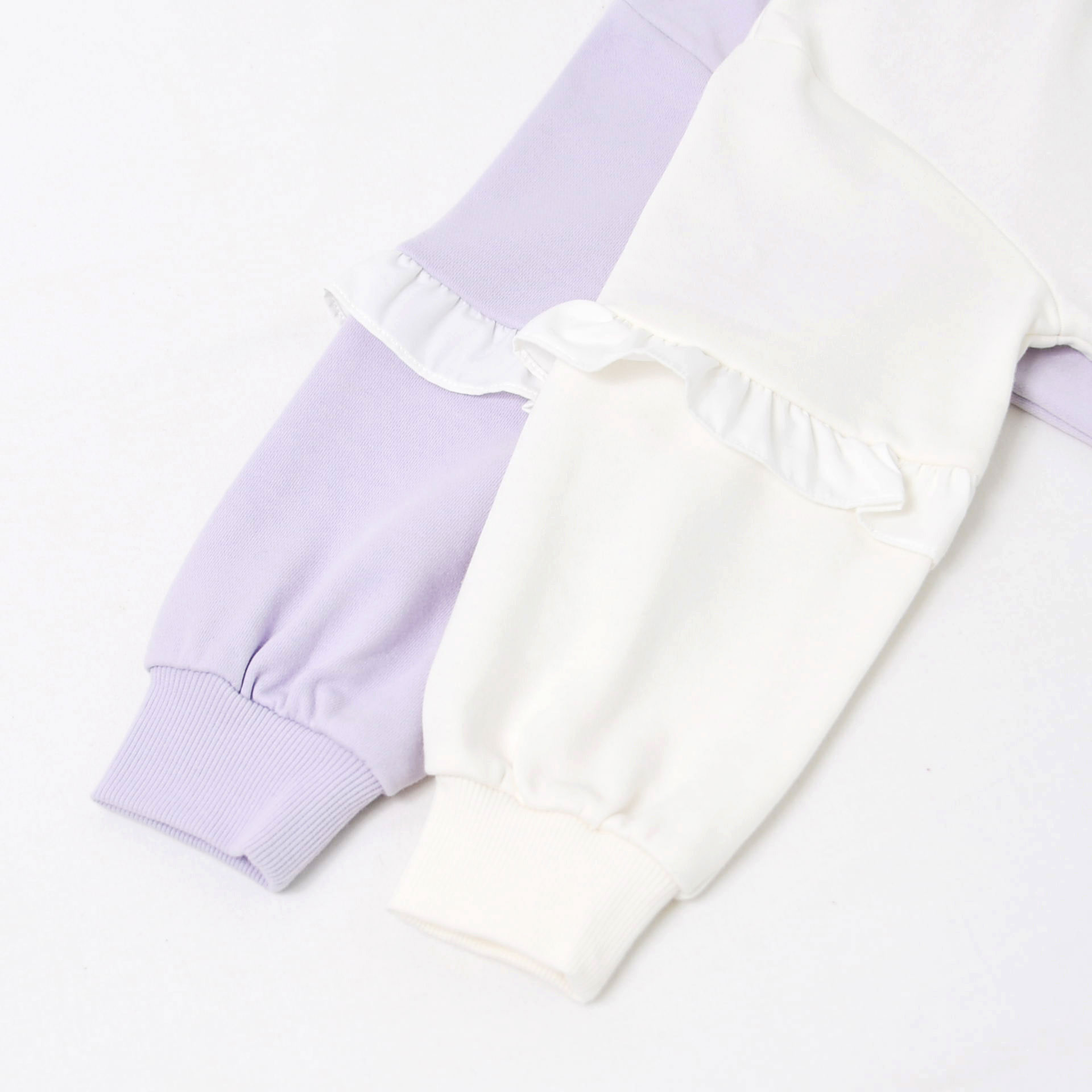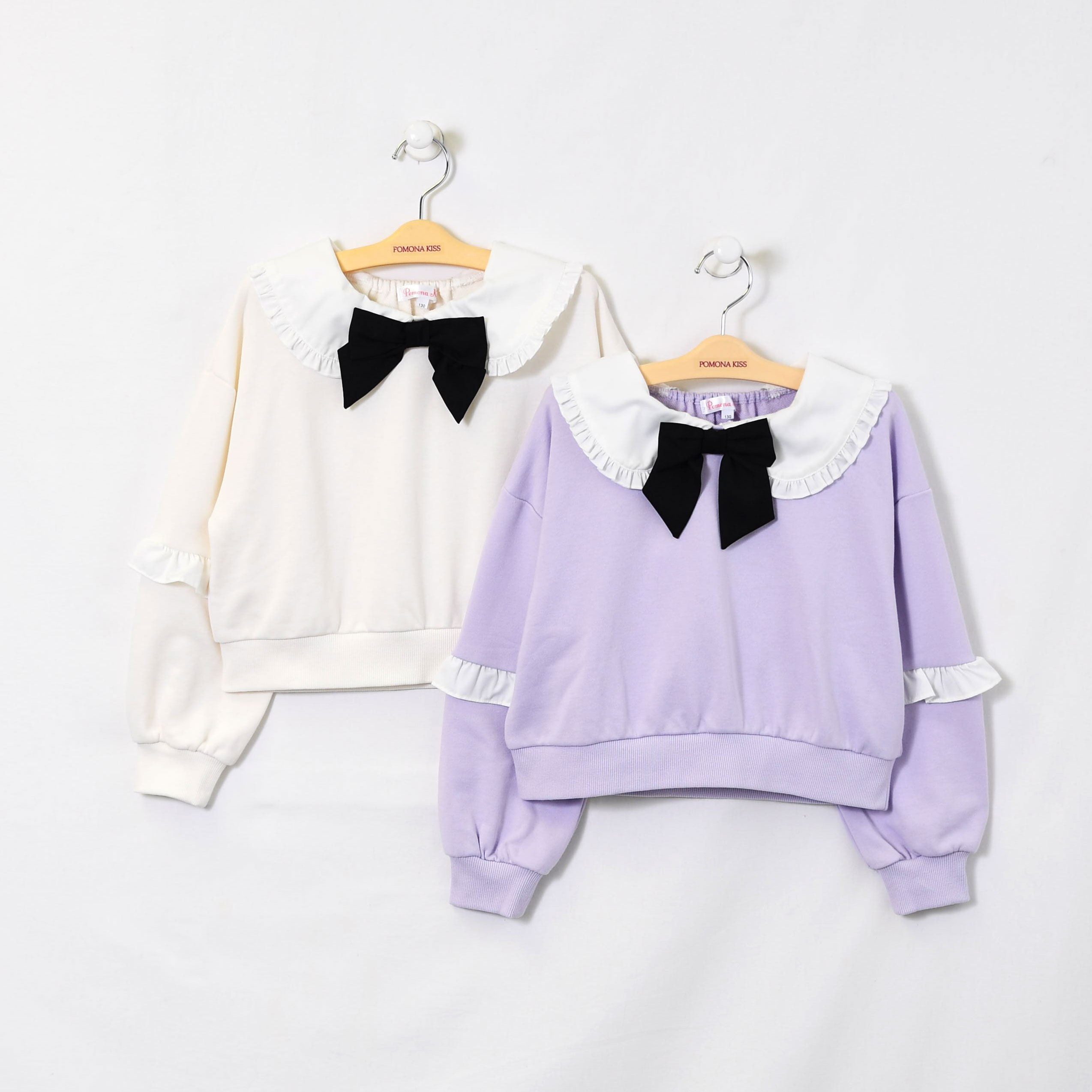 【プルオーバー】取り外しリボン付き、フリル使いガーリーなトレーナー