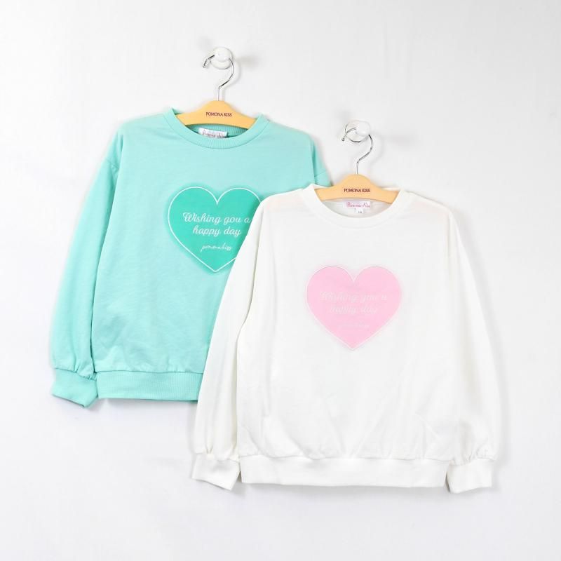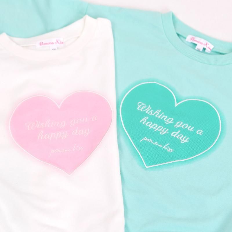 【アップリケトレーナー】チュールのハートアップリケが可愛いシンプルなトレーナー