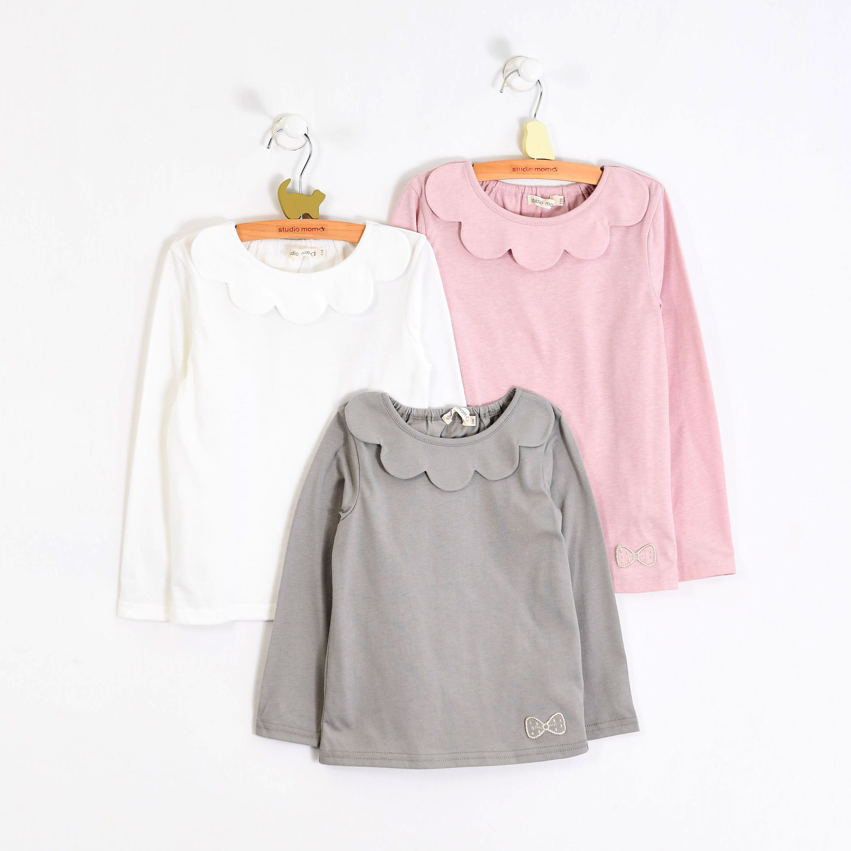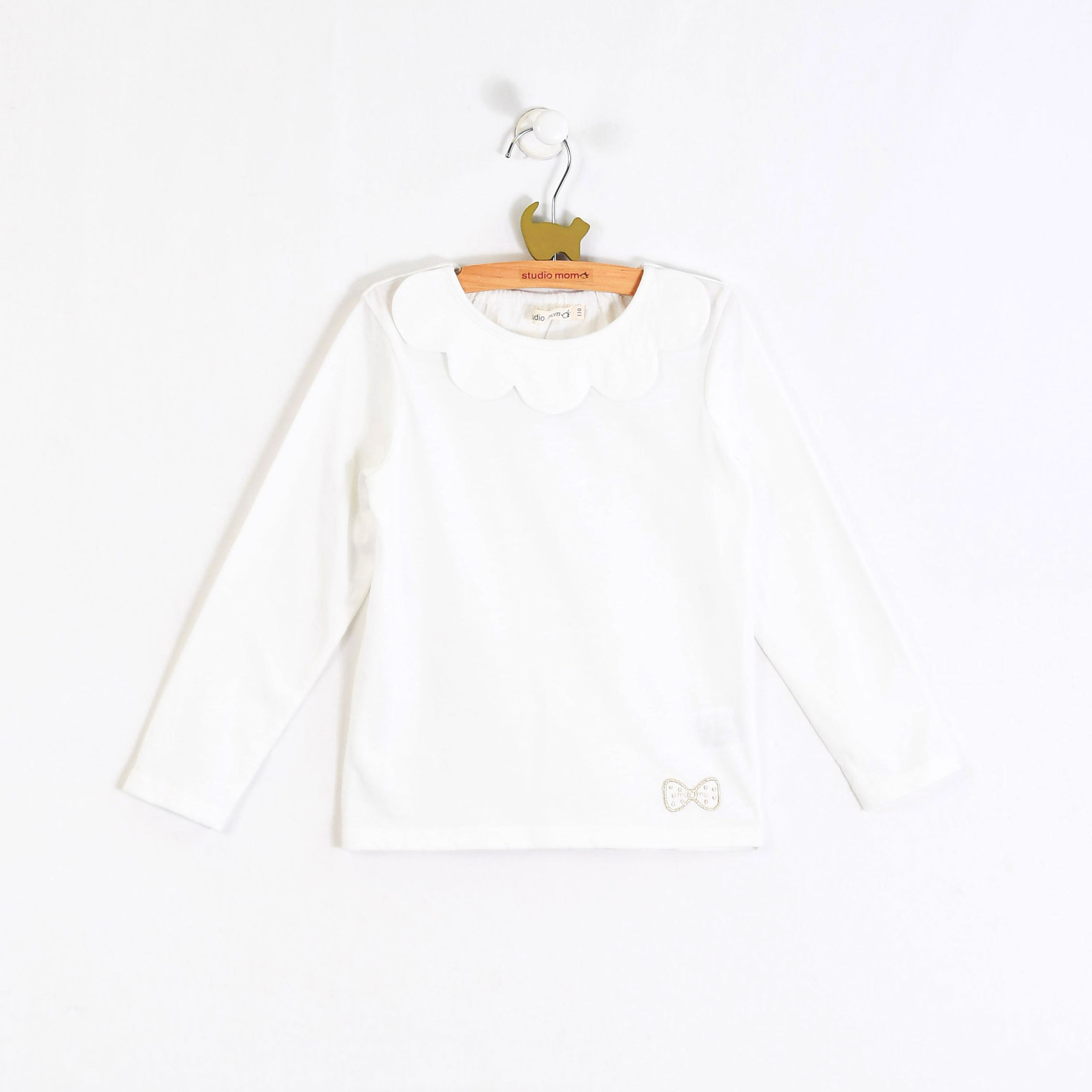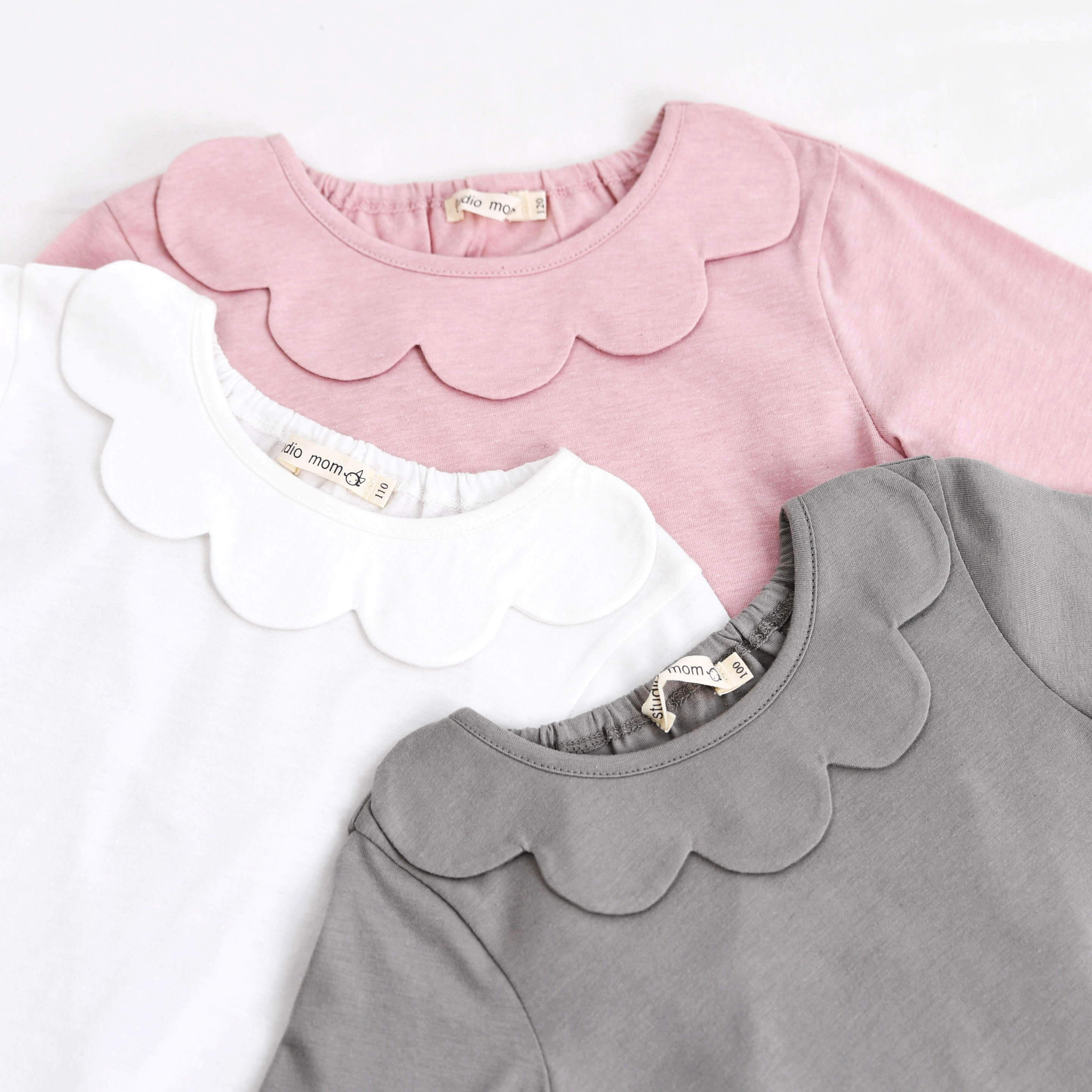 【プルオーバー】momo 定番のスカラップインナー。色違いで何枚あっても活躍する万能インナーです。リボンワッペン付き