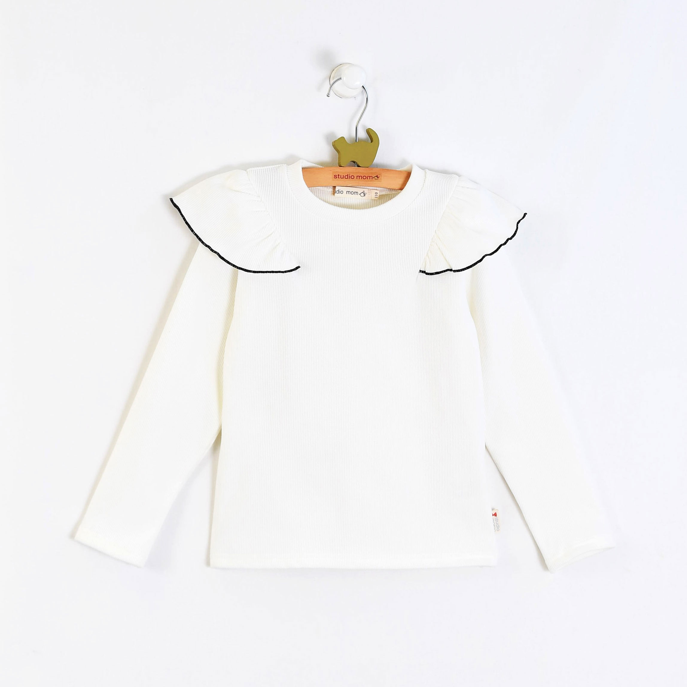 【プルオーバー】肩のフリルが可愛いシンプルで着回しやすいプルオーバー
