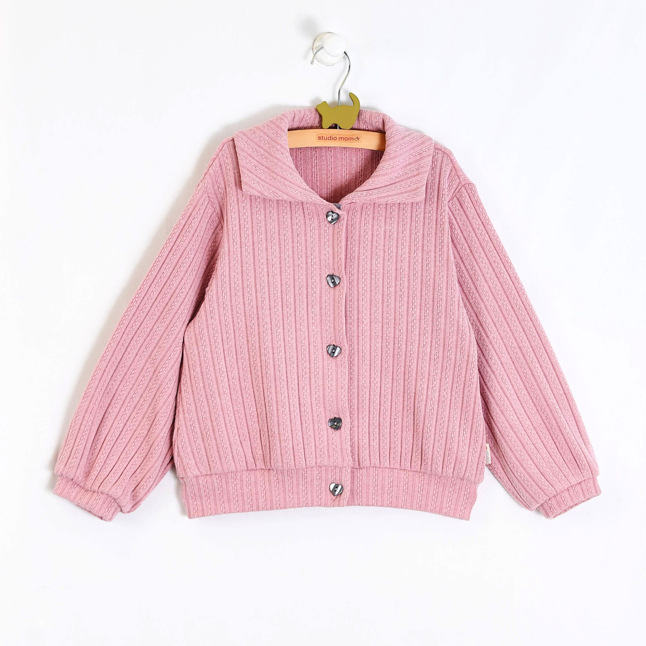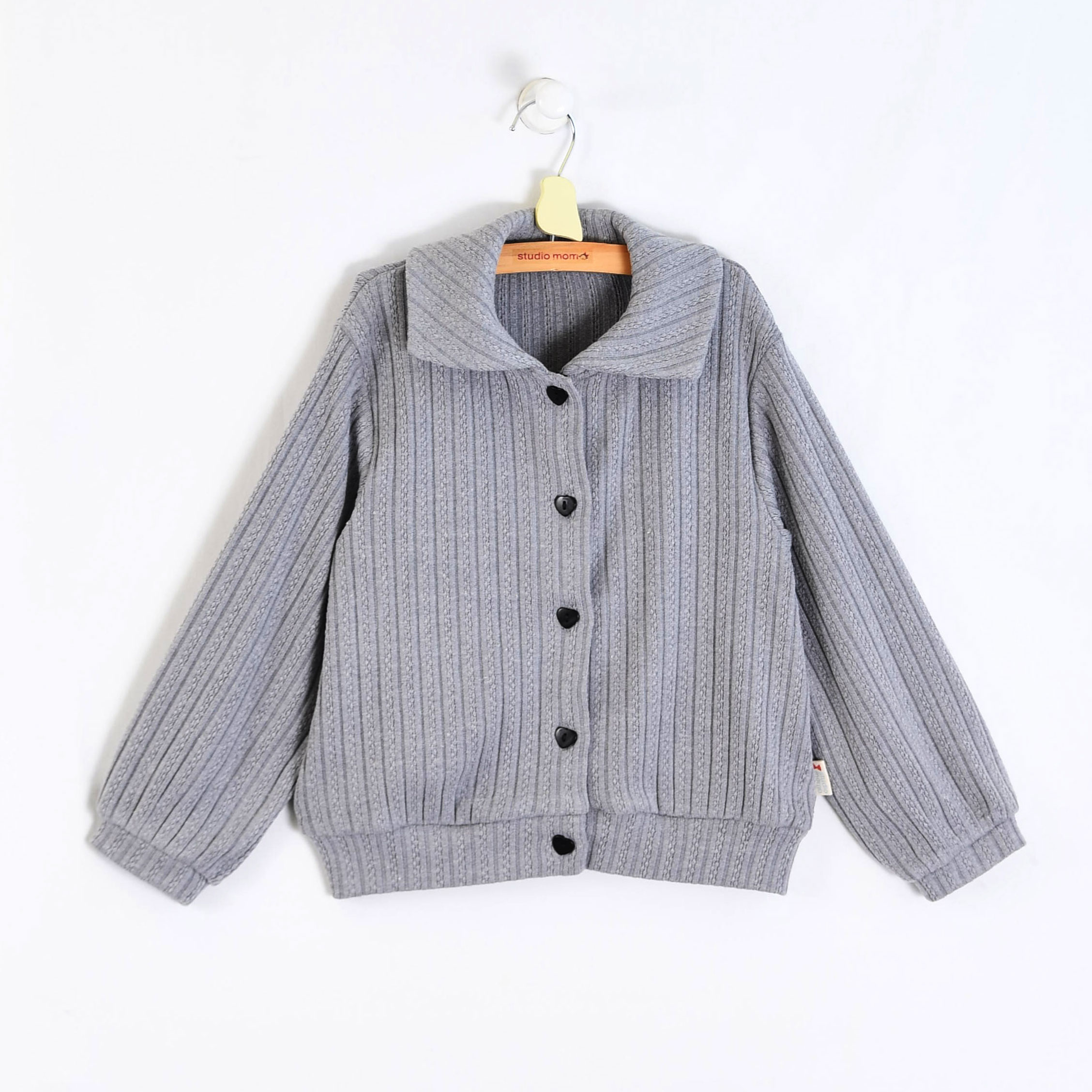 【カーデ】秋の初めに便利なケーブルJQのカーディガン。大きな衿がポイントです