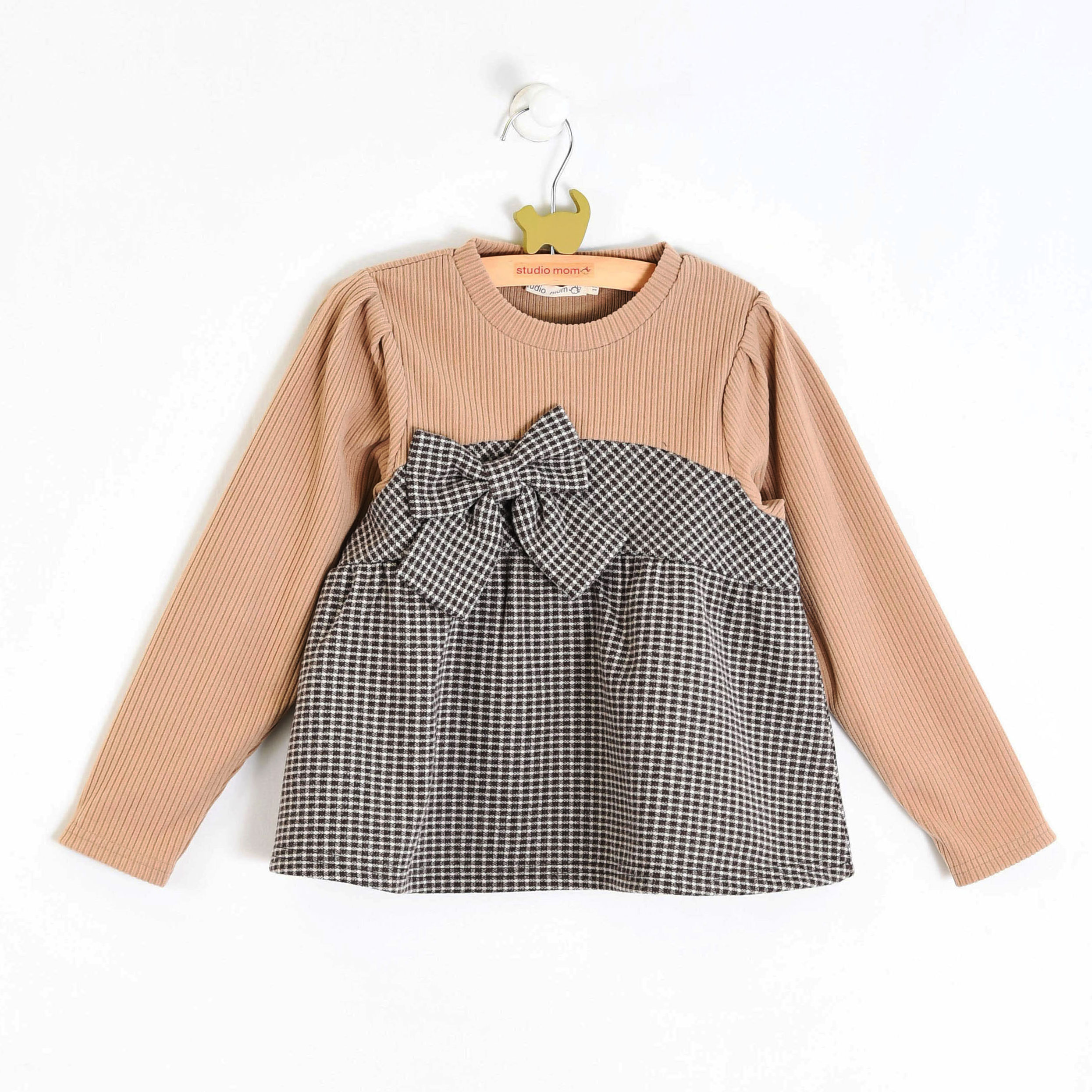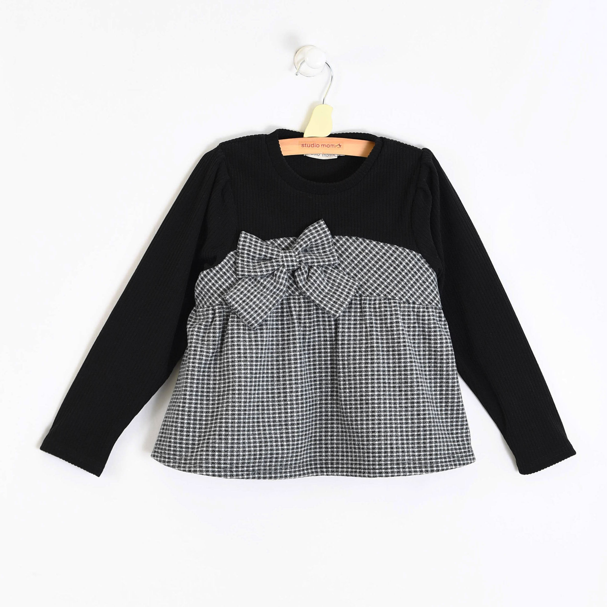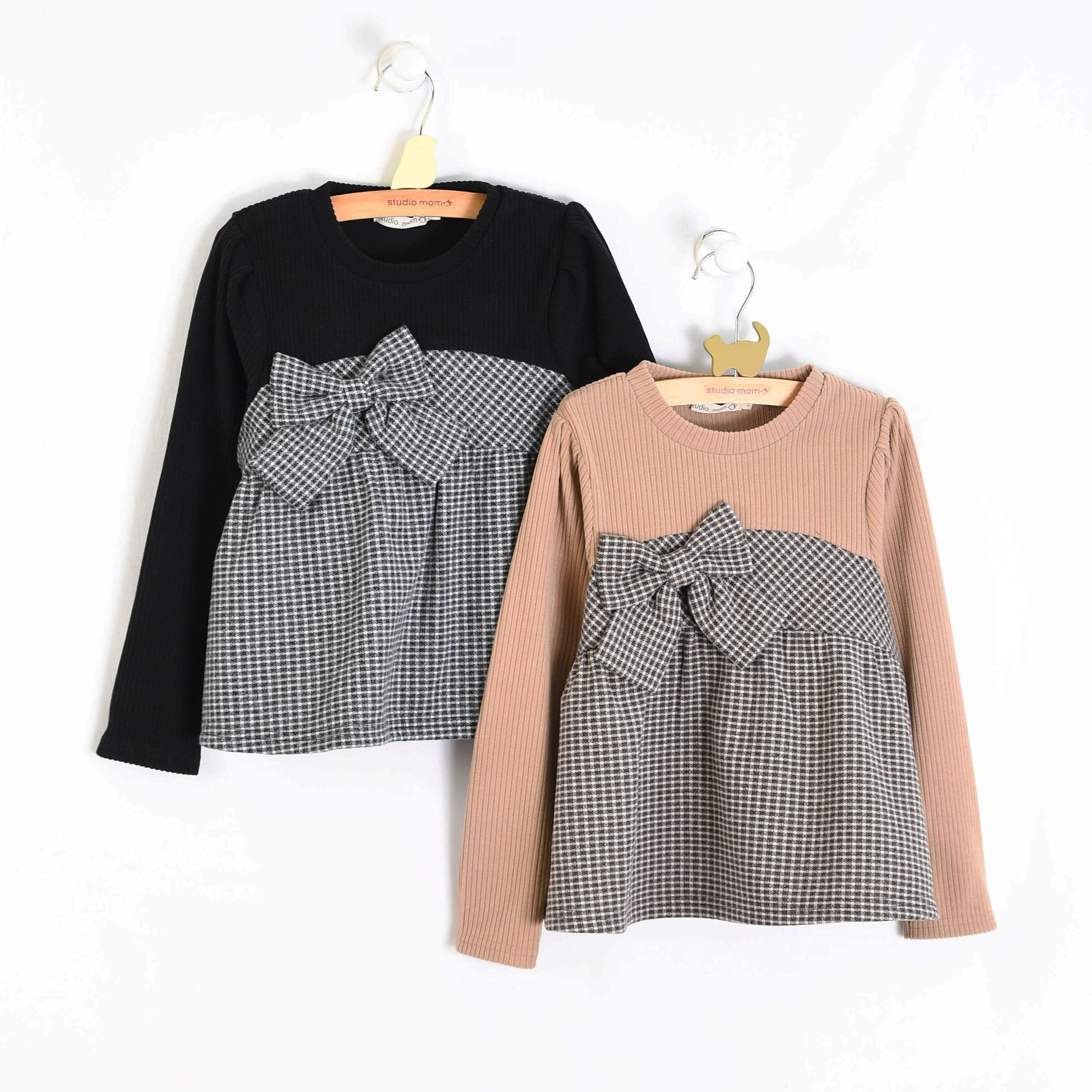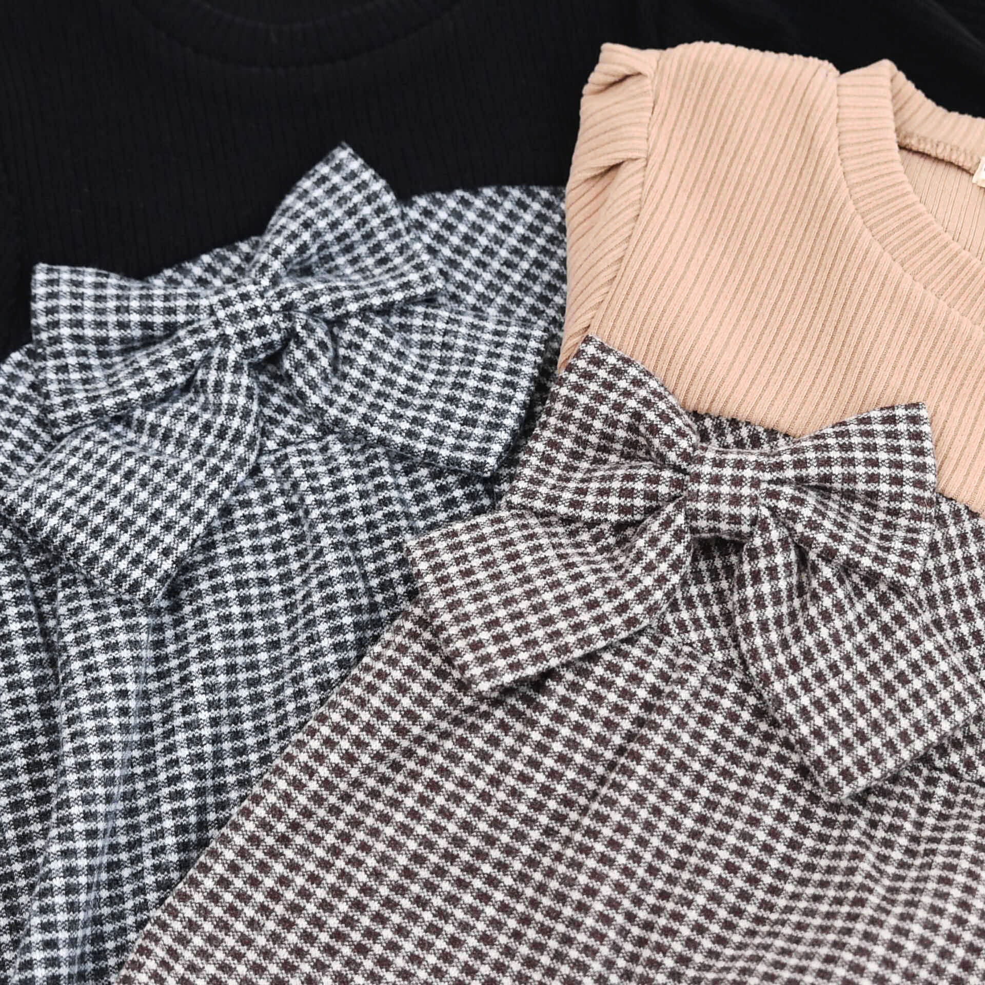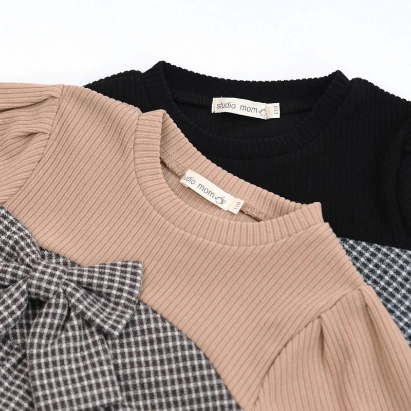 【プルオーバー】大きなリボンがポイントの一枚らくちんレーヤード風チュニック。同素材のパンツとセットアップでお出かけにぴったり