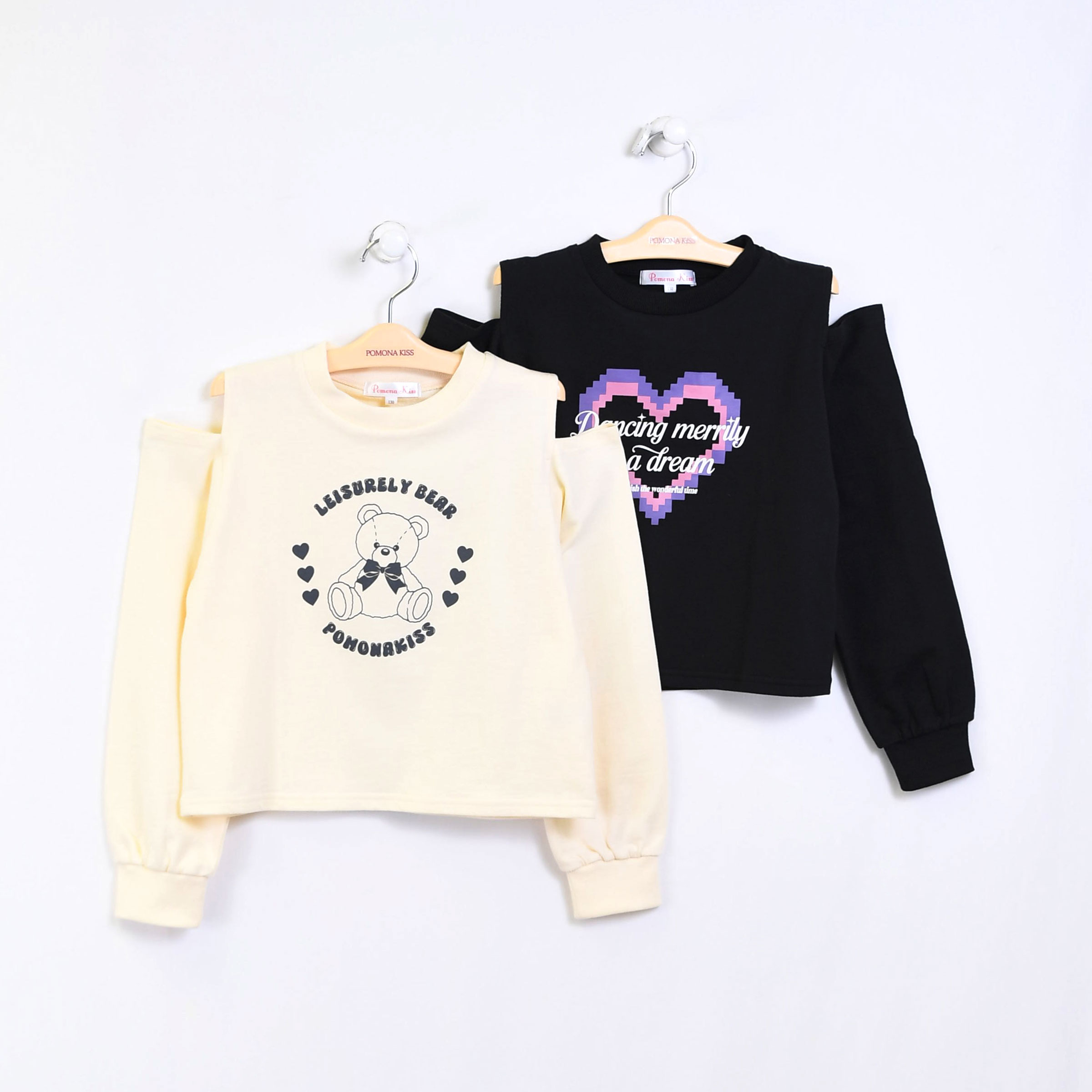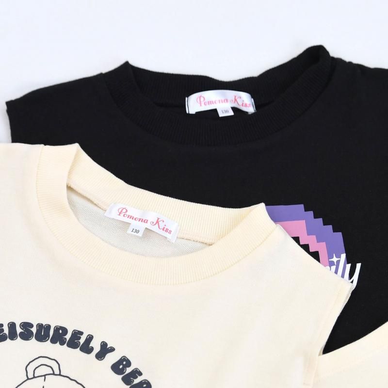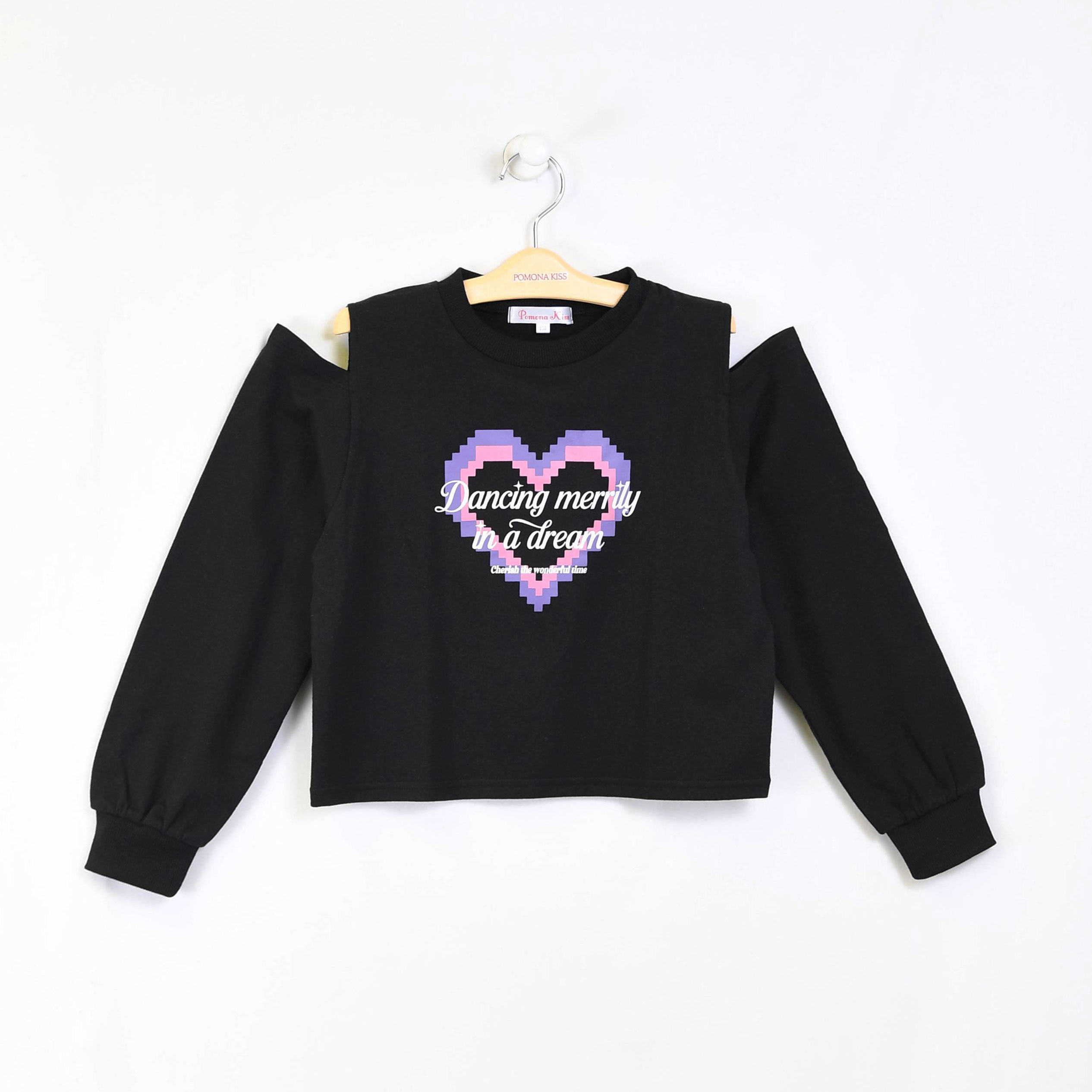 ピクセルハートとテディべのアソートプリント肩開きプルオーバー